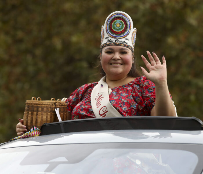 2024-25 Miss Cherokee Moira George is shown in the 113th Cherokee Indian Fair Parade in Cherokee, N.C. on Tuesday, Oct. 7. (SCOTT MCKIE B.P./One Feather photo)
