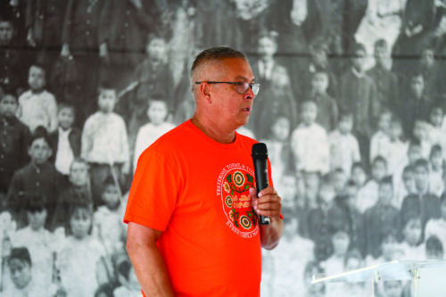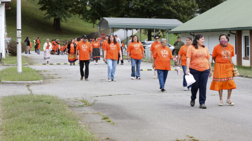 CHEROKEE, N.C. – Hundreds of people turned out, wearing orange shirts, to commemorate the National Day for Truth & Reconciliation event hosted by the Eastern Band of Cherokee Indians (EBCI) in Cherokee, N.C. on the morning of Tuesday, Sept. 30. The event, also known as Orange Shirt Day, featured a walk and informative speeches on the subject of Indian Boarding Schools, specifically the Cherokee Boarding School.