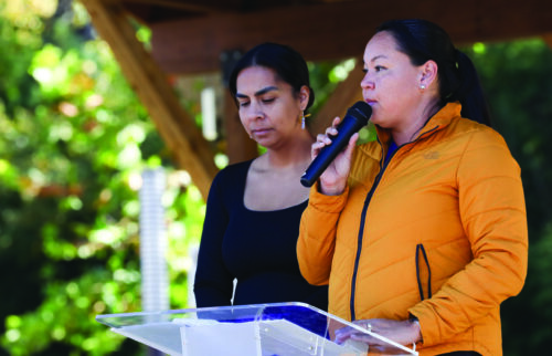 Sheyahshe Littledave and Ahli-sha Stephens, both EBCI tribal members who run a podcast on MMIP entitled “We Are Resilient”, spoke on the MMIP epidemic in Indian Country.