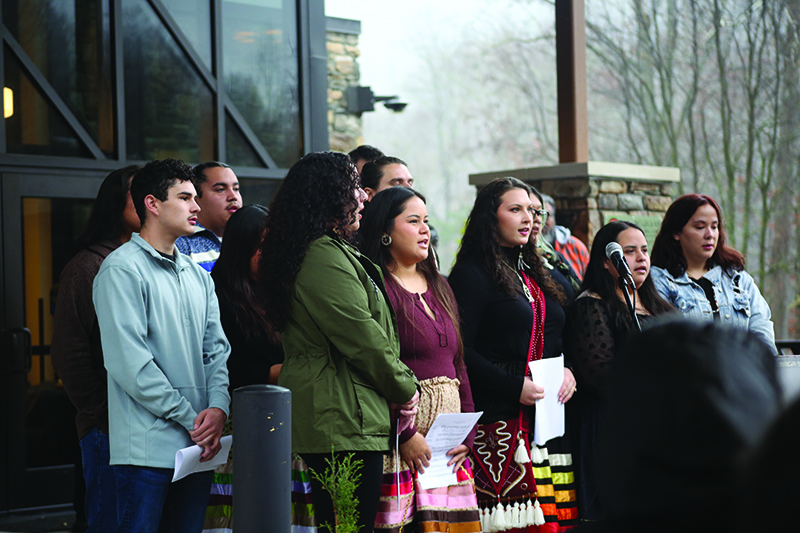 Students in the Cherokee Language Master Apprentice Program (CLMAP) sing three songs in Cherokee language to honor the speakers who passed.