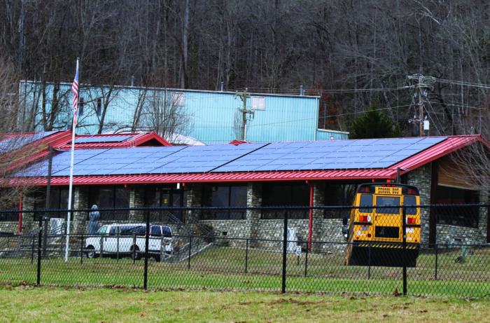A total of 290 solar panels have been installed in a project at New Kituwah Academy in Cherokee, N.C. The project, which will power around 40 percent of the school, was funded through an EPA Climate Protection Reduction Grant. (SCOTT MCKIE B.P./One Feather photo)