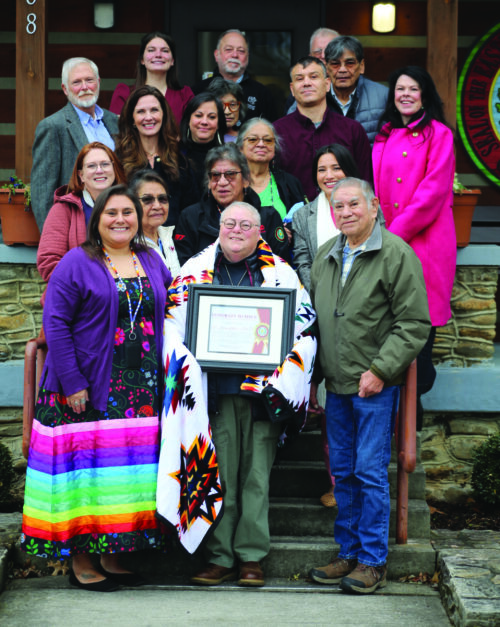 Dr. Lisa Lefler, center, is shown with her supporters following Dinilawigi’s (Tribal Council’s) unanimous decision to name her an Honorary Member of the EBCI on the morning of Thursday, Feb. 5. (BROOKLYN BROWN/One Feather photo)