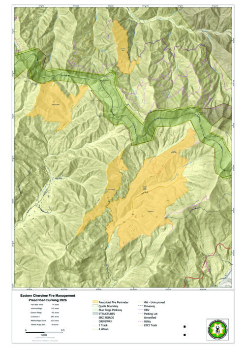 The Eastern Cherokee Agency BIA and US Wildland Fire Service are planning to implement multiple prescribed fire operations in the Tribal Reserve, Tribal Wildlife openings, and on possessory holder land, starting Feb. 24 through April 15.