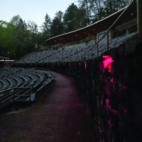 Blythe shared that another major renovation was an upgrade to lighting and sound for the theater. “With a grant ask last year from Cherokee Preservation Foundation, we had some money to upgrade lighting and sound for the show and guest experiences. We just put in, with Asheville Lighting and Design Company, all new safety lighting and house lighting for the theater. Stairways, walkways, all of that is lit underneath. The rain shelter has some upgraded lights. Around the rock wall in the lower level has new updated lights. All the pathways on either side. The lights are color-changing, and they dance to music, different things like that, so we’re excited about that. It’s something that’s been needed for guest safety for sure, but just to build upon the aesthetic, too, and that’s now complete. We also have upgraded sound coming in for the show. We had been utilizing some microphones that needed to be replaced for a little while, and so this year the sound quality should be better for the audience to hear. And you won’t miss a beat and lose a mic in the middle of the show.”