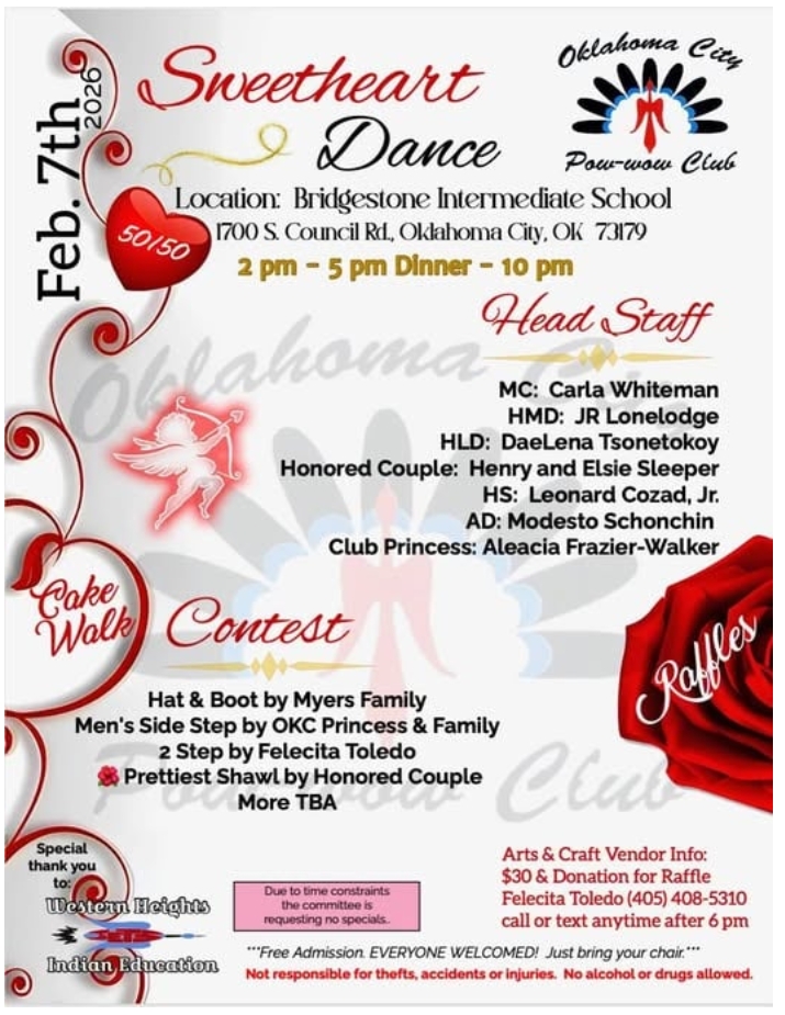 Sweetheart Dance. Feb. 7 at the Bridgestone Intermediate School in Oklahoma City, Okla. MC: Carla Whiteman. Head Singer: Leonard Cozad Jr. Info: Felecita Toledo (405) 408-5310